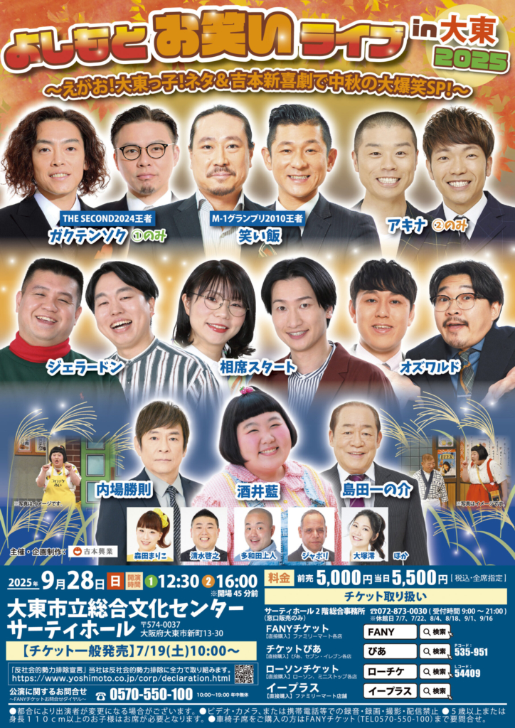 来る9月28日(日)大東市サーティホールが爆笑に包まれる!